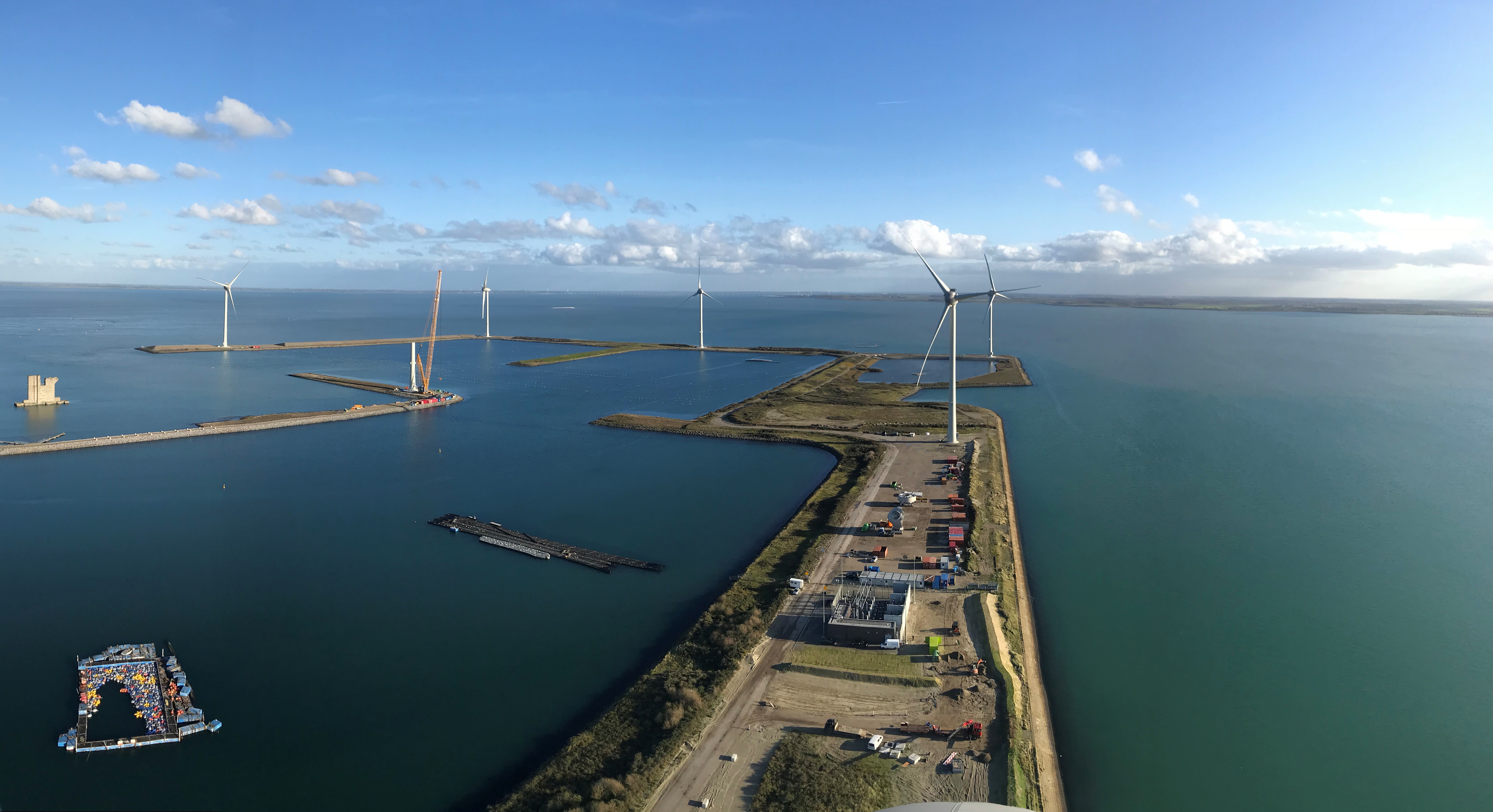The Bouwdokken wind farm is owned and constructed by E-Connection on the Neeltje Jans artificial island, which is part of the so-called Delta Works – a series of construction projects that protect the southwest of the Netherlands from the sea. Wind Cooperation Zeeuwind is a 25% shareholder of the wind farm, which consists of 7 turbines of 4.2 megawatt each.